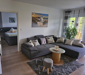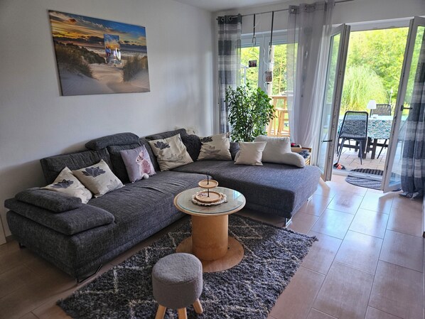 Modern vacation apartment in a very beautiful location, surrounded by forests and hiking trails! provides a garden and more. Stay connected with free in-room WiFi.