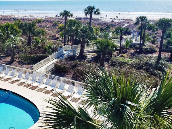 We found the property to be great! Very clean and tidy. Great porch and view of pool and ocean. Condo isn’t big - but we knew that before reserving and it was perfect for 2 people. Well stocked with plates, cups, sliverware, etc. Bed was comfortable. Loved the proximity to Coligny Plaza! We parked on Thursday and didn’t move our car until Sunday. Great access to beach!