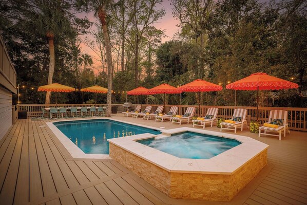 *No extra charge for pool heating. Pool shoes recommended due to the textured bottom of the pool. Pool safety is a priority. Our pool is fully enclosed with self-closing safety gates. All doors leading to the pool have a door alarm that is installed high on the door that alarms if someone opens the door without pushing the bypass button first. Also, the door will alarm if it is left open for more than 7 seconds. Despite these safety features, children must be supervised at all times to guarantee safety.* **Please observe the Town of Hilton Head Island's Noise Ordinance by respecting quiet hours between 10 pm and 7 am. Privacy-safe noise and smoke monitors are installed and utilized to notify guests**