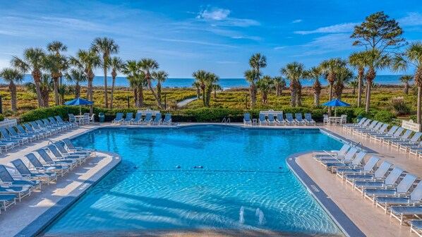 Outdoor pool, a heated pool - Welcome to oceanfront paradise-unit 108, just steps away to the beach and pool.. (Hilton Head Island)
