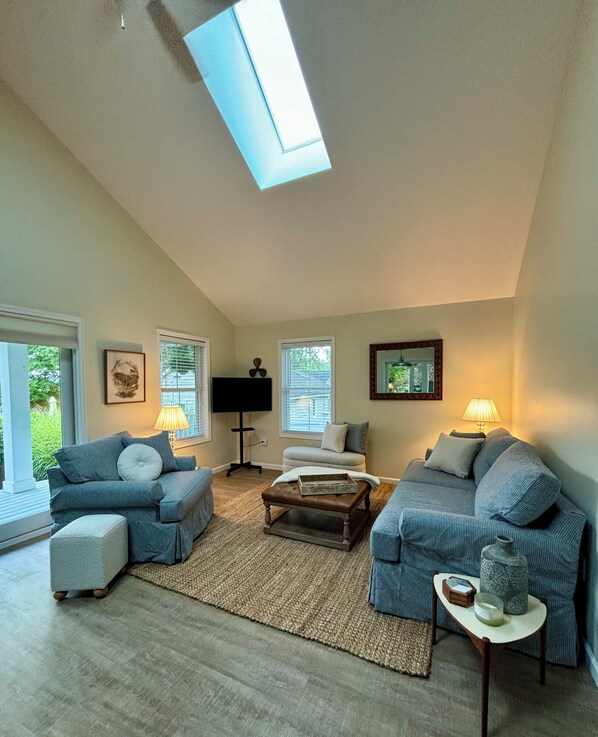 The cottage is brand new, very comfortable, incredibly well stocked and located just one cottage from the lake. The porch is where we spent most of our time. It was heaven!