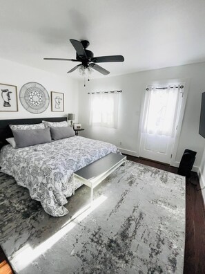Peaceful 2/2 Guesthouse w/ King Bed & 3 - 65” TVs provides laundry facilities and more. Stay connected with in-room WiFi.