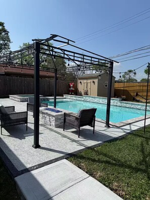 Serene 5-bedroom house with AC in vibrant Houston provides amenities, such as laundry facilities and a hot tub. Guests can connect to in-room WiFi.