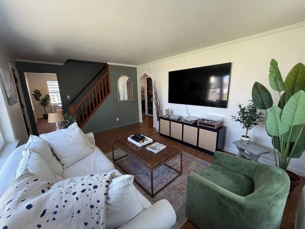 The Charles Cottage is a newly renovated and professionally decorated 3-bedroom, 1-bath home offering comfort and convenience. The main floor features a king primary bedroom, full bath, oversized eat-in kitchen, living and dining rooms. Upstairs are two queen guest rooms and a small workspace. Outside a fire pit and yard. Located on a quiet street just 1 mile from Warren Street, 3-minute drive, 20-minute walk, and steps to Dunkin’, a gym, gas station, and pharmacies and Stewart’s ice cream.
