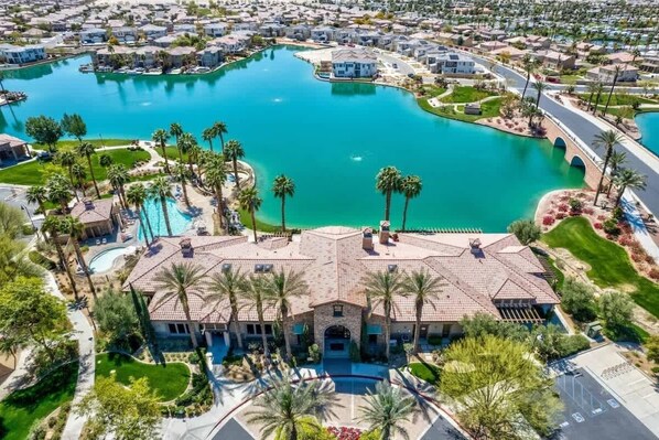 Desert retreat in Terra Lago Golf Course's heart. Our chic home offers a spacious living room, fully equipped kitchen with modern appliances, and outdoor BBQ for family nights to remember. Relax on the loungers or cool off in the above-ground pool.