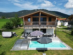 6 persons Chalet Bergherzerl in the Chiemgau. Summer pool, whirlpool & sauna provides amenities, such as a garden and a hot tub. Stay connected with in-room WiFi.