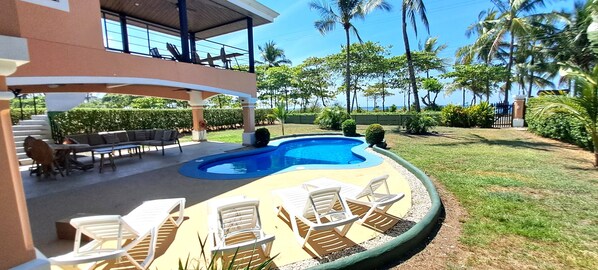 Outdoor pool - Beachfront Casa Barracuda 3BR Luxury,  pool  w 1/3 acre,  Playa Hermosa de Jaco! (Playa Hermosa)