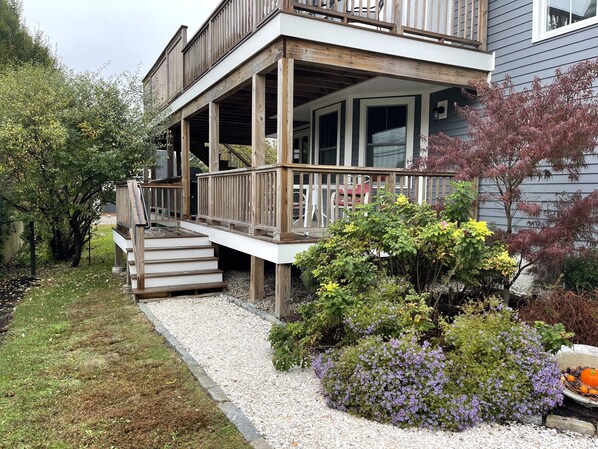 Great location, off street parking, air conditioning, washer dryer, custom tile shower, huge south facing deck. Short drive to Newport Beavertail Lighthouse. Walking distance to town, restaurants, beaches. Not pet friendly.