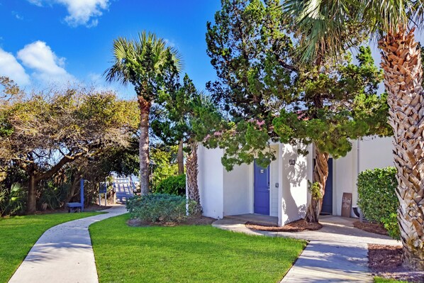 Linens are provided with this unit, as well as a starter set of paper towels, toilet paper, dish soap, dishwasher detergent, and some personal amenity items. These items will not be replenished during your stay. Villas by the Seas has 3 coin-operated laundry rooms accessible with your key cards.