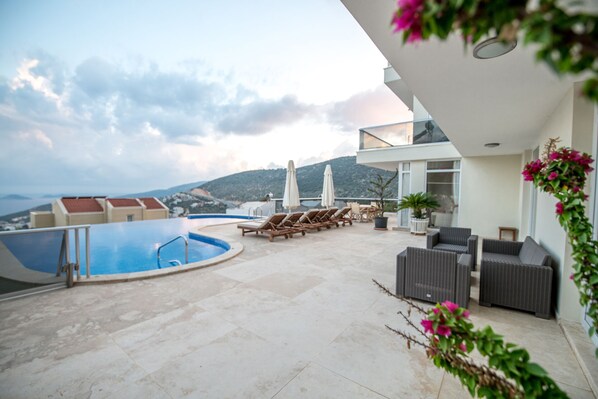 * Living room in terrace with exceptional view to Kalkan