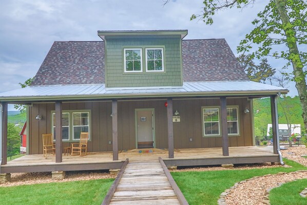 Escape to lakefront luxury at our Modern 2370 sq.ft. cabin, a perfect family retreat for up to 8 guests. Indulge in the fully appointed modern farmhouse kitchen, three bedrooms, and 3.5 baths featuring Grohe showers and tubs. With a 2 king bed, two en-suites, and a charming third bedroom with 2 single twins and a bunk bed, every member of the family will find comfort. Enjoy the convenience of free WiFi, 4 flat-screen TVs, and Suddenlink.