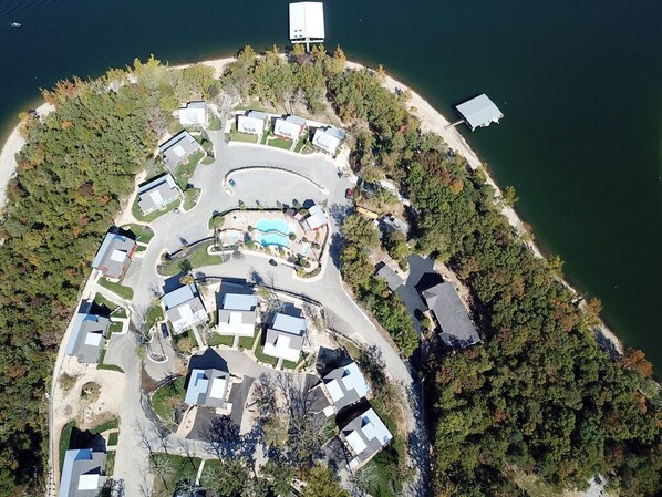 Ascend to the upper 3rd level for a king bedroom, trundle beds for your young ones, sitting area, bathroom, and loft space for lounging or extra sleep. Maximize your stay with the new two-level saltwater resort pools, featuring spa whirlpools and a splash pad for the kids. Launch your watercraft at the ramp and spend the day exploring the lake.