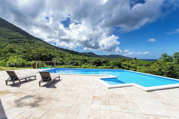 Quiet hillside villa with expansive sea, beach, and mountain views...