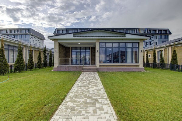 Novel Hotel is a relatively modern resort on the shores of Lake Issyk-kul. It's location is at the far end of the strip of resorts centered around Cholpon-Ata. There are only a few General stores around the local Village and no restaurants, so eating options are restricted to the resort itself. The hotel restaurant, next to the swimming pool, provides good standard of food at a relatively expensive price.
