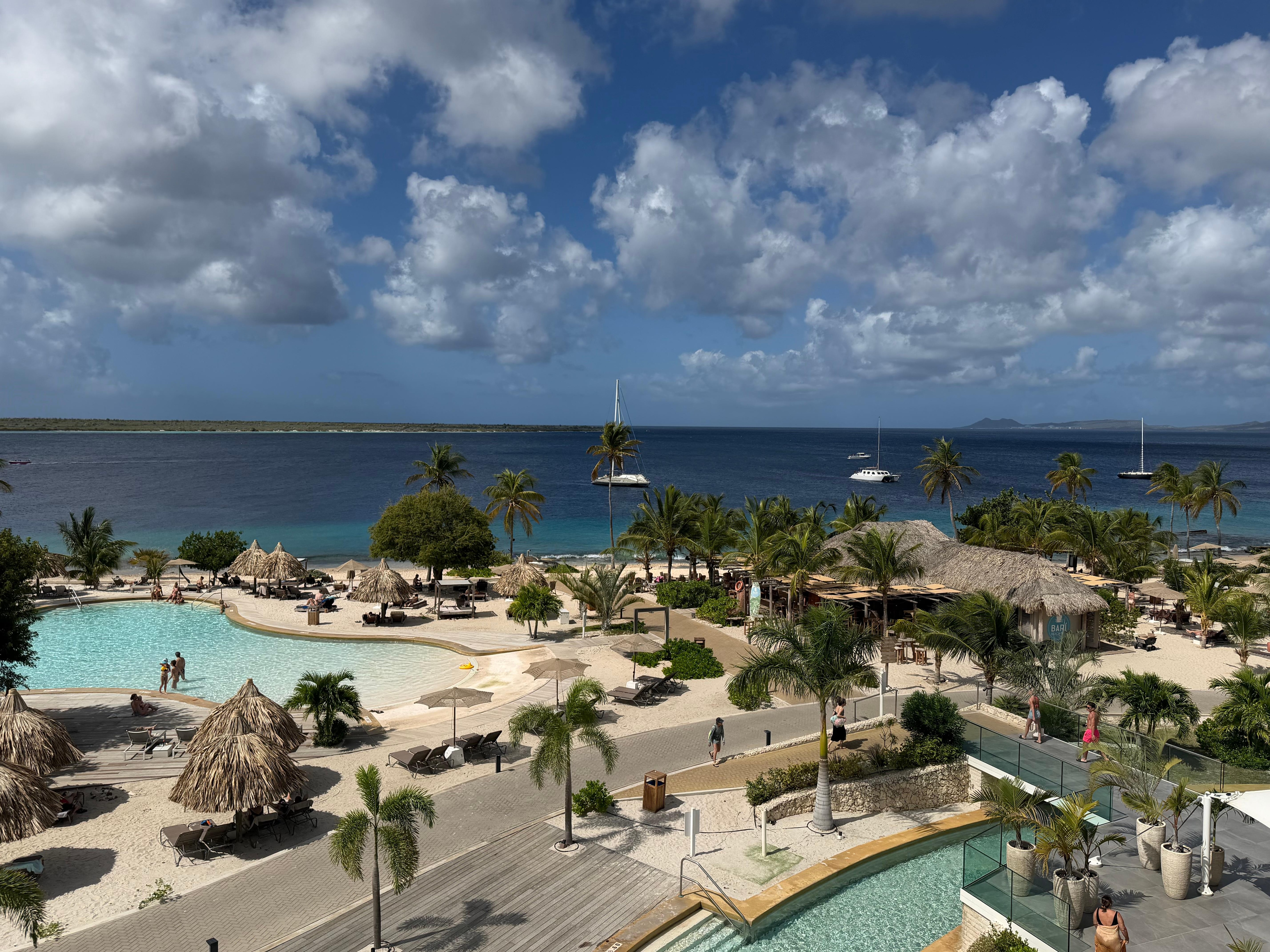 Tropical paradise on Bonaire's shores: beachfront dining, cocktails, two ocean-facing pools, and warm hospitality for sun-soaked days.