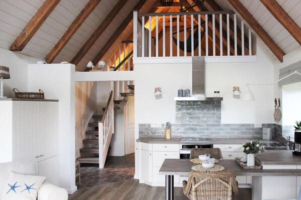 Near the Baltic Sea, this charming apartment is nestled in a former farm with beautiful gardens. Enjoy the spacious living-dining area, retreat to the second level or unwind on your private terrace while taking in nature's serenity.