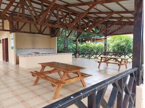 Nestled in a tranquil La Fortuna neighborhood, Baecker House offers an idyllic retreat. This modern 2-story house boasts spacious accommodations with private showers and bathrooms in each room, kitchens equipped with stoves and microwaves, plus air conditioning units to keep you cool. Enjoy access to a community swimming pool and BBQ area just steps away.