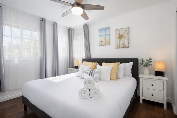 Everything was really nice. They provided everything we needed such as coffee, hair dryer, pack n play, high chair, shampoo, towels etc. Really cute place with hotel style pillows on the beds. Spacious and the yard was really nice. We’d definitely come back here if we travel to San Diego again.