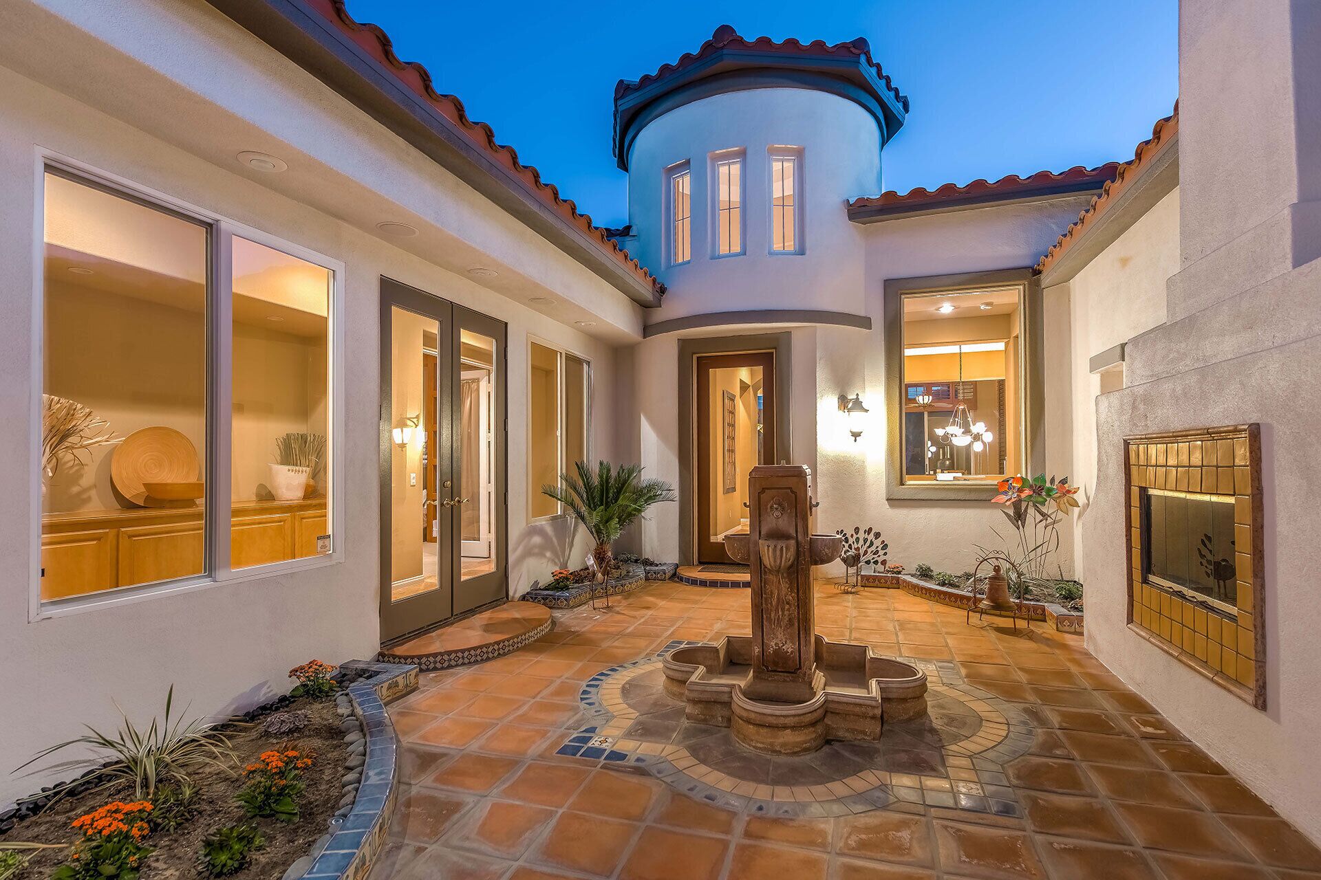 The living room opens up to your own private outdoor desert paradise with something for the entire group. The beautifully landscaped backyard features an outdoor dining table, couch seating area with a 65` outdoor TV, a fire pit, built in gas BBQ.