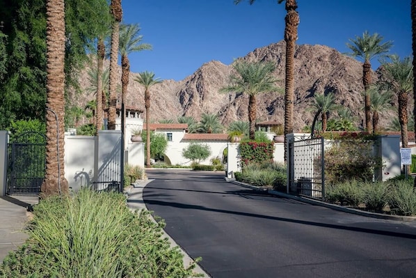 All of our guests are greeted by our security team at the guard gate and only registered guests are permitted to enter the resort grounds. Registered guests have full access to the resort's beautiful pools, hot tubs, club house, cabañas and well appointed gym from 6am to 10pm. Access to the villa is keyless and your personal entrance code to open the door will be sent prior to your arrival. Guests will have access to the villa and patio for the villa rented. Guests will not have access to the garage area. Please note that there is a video doorbell that captures the exterior of the entry doors (THERE ARE NO CAMERAS IN THE INTERIOR SPACE)