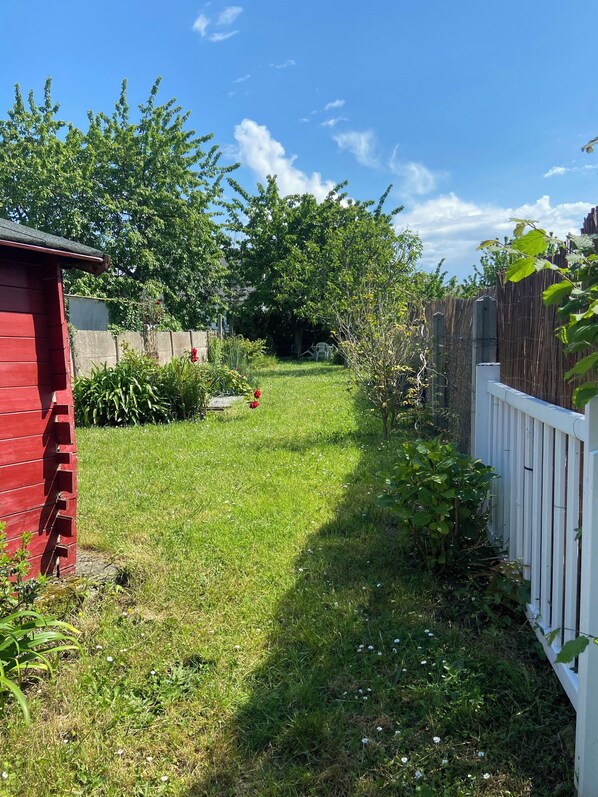 Stone house. 4 bedrooms, 5 beds, 2 bathrooms. Village center, beach 150 m away. Enclosed garden