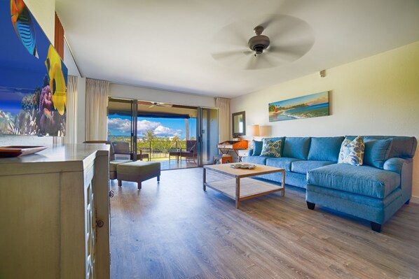 E Komo Mai “welcome” to Maui Eldorado A204! This newly remodeled tropical condo is located in the heart of Kaanapali, one of the world's most well-known destination resorts with Kaanapali north golf course frontage views and ocean view from your private patio. It’s ideal for a romantic getaway, as well as the family looking for kid-friendly beaches and all the comforts of home amenities.