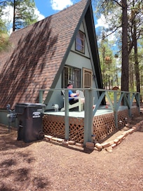 Nestled in a pine forest, this A-frame retreat is perfect for long-term stays. Enjoy solitude and convenient access to everything Lakeside and Pinetop have to offer while cozied up by the wood-burning stove or sipping coffee on the patio.