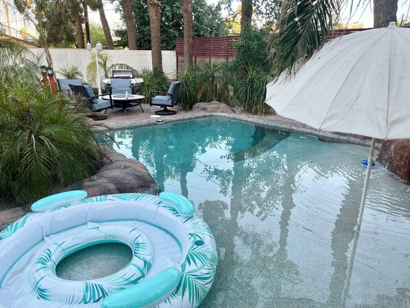 Yes, this property has an outdoor pool. Pool types include heated pools.