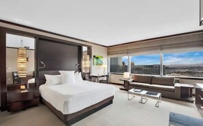 This suite is a privately owned unit inside the Vdara, a luxury condo-hotel located by The Strip in the CityCenter complex, with walkway connections to the Aria and Bellagio.