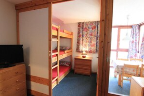 50m from ski slopes, 3rd floor, view ski slopes, sauna, hammam, balcony, tv, ski locker, 28m²