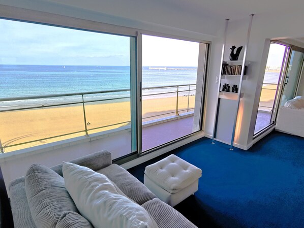 Very large apartment of 120m ² facing the sea, with a beautiful terrace, in the heart of the swimming area of the Grande Plage des Sables d'Olonne