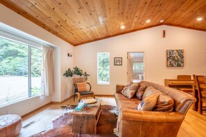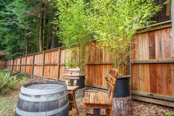 Coastal Redwood Bliss provides a firepit and more. Guests can connect to in-room WiFi.