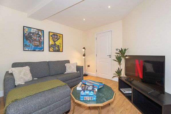 ✔ Free Wi-Fi (3G and 5G available, Virgin) ✔ 55-inch TV with streaming channels like Netflix (no traditional television service) ✔ Fully equipped kitchen with modern appliances (Microwave, Oven, Toaster, etc.) ✔ Nespresso Machine (coffee maker) ✔ 5-seater dining table with chairs ✔ Fresh towels and linen ✔ Washing machine and dryer (available on request; may be in use for guest linen) ✔ Heating system ✔ Iron and ironing board ✔ Desk and workspace ✔ Private patio with outdoor furniture ✔ Hassle-free self-check-in via a key box after 3 pm