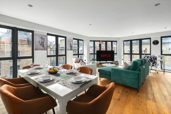 All guest rooms at Luxury 70sqm 1BR Hoxton Sq near Old St Sleeps 4 have amenities, such as free WiFi, desk chairs and dining tables.