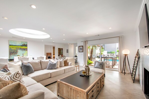 Nestled on a secluded 1-acre lot, this resort-styled property offers an idyllic escape with its large private flat grassy backyard, sand volleyball court and outdoor gym. With two kitchens including a chef's kitchen with three refrigerators and spacious bedrooms, this haven is perfect for big gatherings. Kids stay free up to six kids and pack & play are available for smaller children.