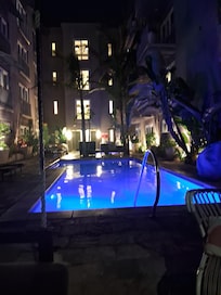 Yes, this property has an outdoor pool. Pool access is from 7:00 AM to 10:00 PM.