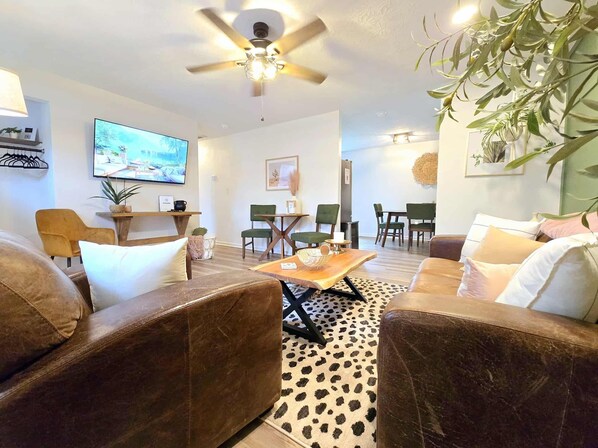 Perfect for a quick weekend getaway, or in our case to attend a wedding. The garage being converted to a master suite made it so my parents could have their own space, and my family could use the other bedrooms and bath. Decor is very modern and cozy.