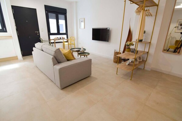 Modern studio in the center of Málaga managed by Sharing Co with double bedroom, cozy and bright living room, two-seat dining area, and fully equipped kitchen. Enjoy a fantastic stay in an ideal space for both families and remote workers who want to work from the Costa del Sol and have the main points of interest in the city just a few steps away.