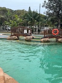 BIG4 Manning Point Holiday Park offers a perfect family getaway near Old Bar Beach. Children can enjoy the playground and arcade while adults relax in the spa tub. Everyone appreciates the two outdoor pools, complete with a waterslide for refreshing entertainment.