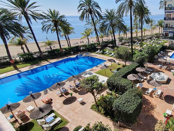 Completely renovated studio apartment located on the 5th floor of Block A of the Skol Building, in the heart of Marbella surrounded by all amenities the city has to offer such bars, supermarkets, restaurants, so the car is not necessary. The studio is facing East with great views over the sea, the park, and the mountains.