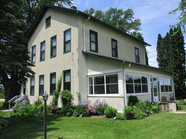 I loved staying at this old farmhouse. Karen was a most hospitable host. If you’re looking for some peace and quiet this a great home to offer that. We watched deer and fireflies in the fields each night. My husband likes all the modern tech amenities, which this home doesn’t have, but my kids and I loved the beautiful grounds and screened in front porch was well utilized for morning coffee and evening games. The weather was hot and we were very thankful for the a/c in every room. Easy access to local lakes and the Dells; a beautiful 20min drive for most everything we did.