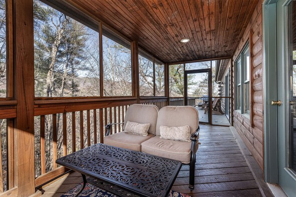 Photo gallery for Peaceful screened porch, newly added fireplace!