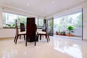 Experience the epitome of luxury in this beautifully furnished 3-bedroom, 3.5-bathroom home, nestled in a quiet Poblado area. Enjoy high-speed internet and Apple TV while relaxing on leather sofas or unwind with an Ooma phone call to US friends and family.