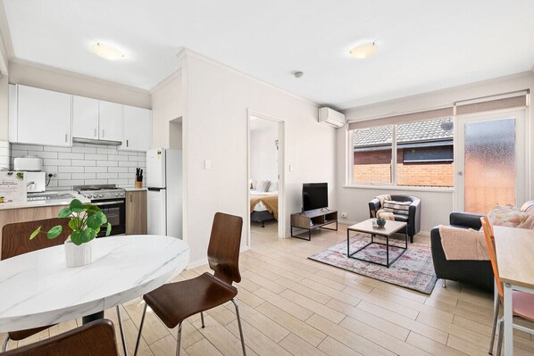 Elevate your urban living experience at this stylish apartment in the fashionable St Kilda, with an inviting open plan living and dining area, a comfortable king bed that can split into two singles, air conditioning and heating for comfort. Take advantage of modern amenities like a fully equipped kitchen with gas cooking and Wi-Fi to stay connected.