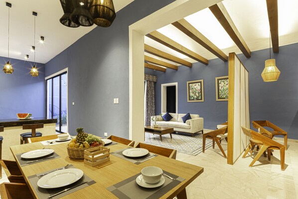 In the heart of Mérida, Yucatan, this historic home offers a warm welcome with its elegant open floor plan living area. Unwind in the stylish sofa or explore your creativity in the fully equipped kitchen and adjacent dining area. With comfortable bedrooms featuring 5☆-resort comforts and a private patio boasting a refreshing pool, this retreat is perfect for relaxation.
