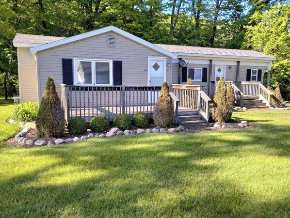 Enjoy the great outdoors from the patio and three decks surrounded by nature. The peaceful setting allows you quiet mornings sipping coffee and evenings by the fire pit. Patio furniture and a gas grill complete the outdoor experience. Decorated for the holidays so you get home feeling while your away.