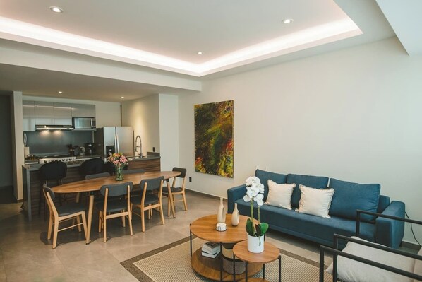 In the heart of Mexico City, this apartment in Colonia del Valle offers a peaceful retreat. With 2 bedrooms, 2 full bathrooms, and a fully equipped kitchen with water filter for drinking. Enjoy smart TVs in each bedroom and access to the building's gym.