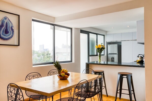 This beautiful 2BR is located right next to Parque España on a quiet street in roma norte, you're also very close to La Cibeles and its lovely cafes or Condesa with its art galleries and restaurants.
