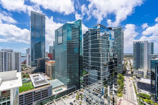 Brickell is a bustling Manatthan-esque neighborhood (it is, in fact, often called the Manhattan of the South), but more modern, with tropical climate, and right by the water. Everything you need to live, work, shop and relax can be found within walking distance in this highly concentrated urban core. It is centrally situated between Key Biscayne (5 minutes) and South Beach (10 minutes), producing an exotic contrast between its ritzy high-rises and its neighboring beaches & islands.