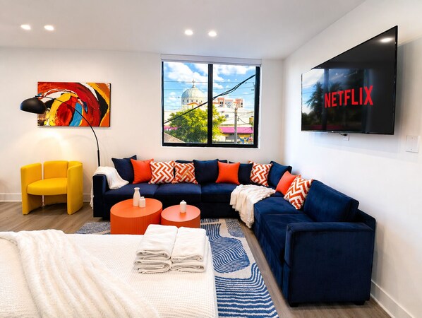 From the moment you arrive, the bright interiors, natural light, and contemporary finishes create a welcoming atmosphere. After a day exploring the city, unwind in a cozy living space, stream your favorite shows, or enjoy a quiet night in with everything you need at your fingertips.